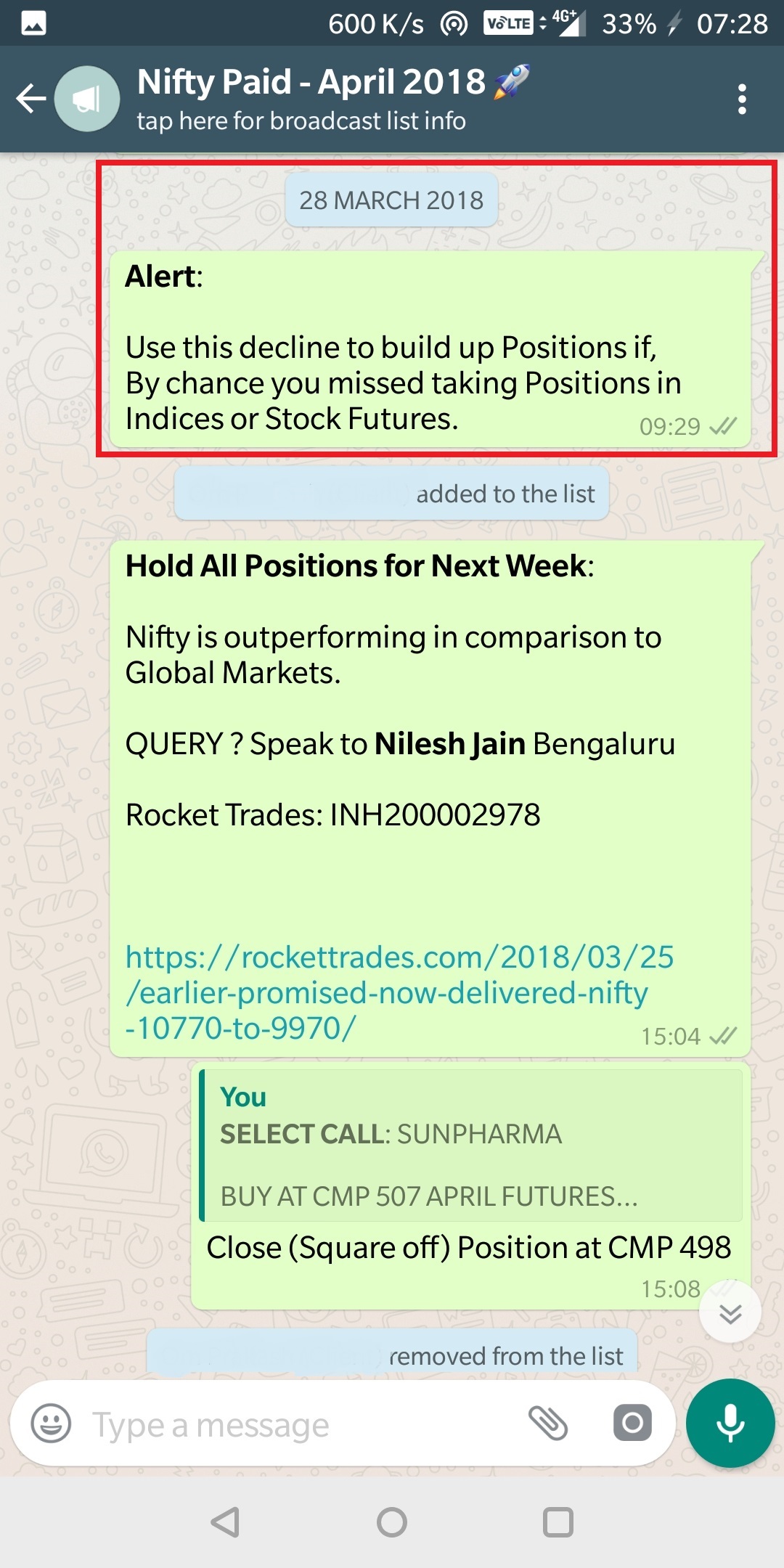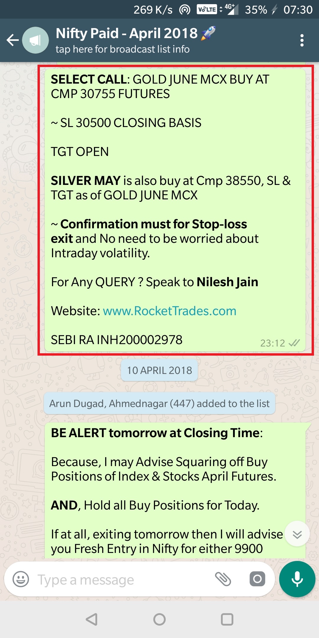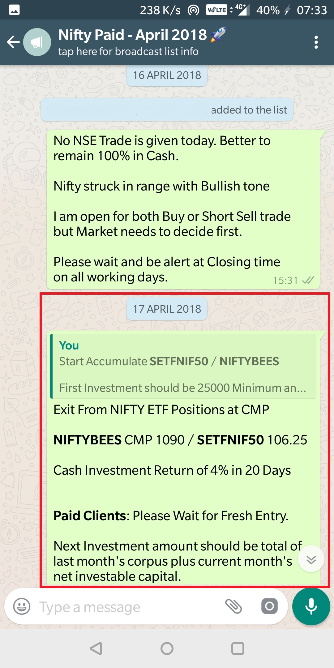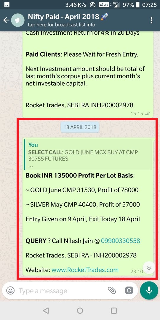 Action Speaks Louder than words: Paid Client WhatsApps’ Screen Shot for Nifty & Gold