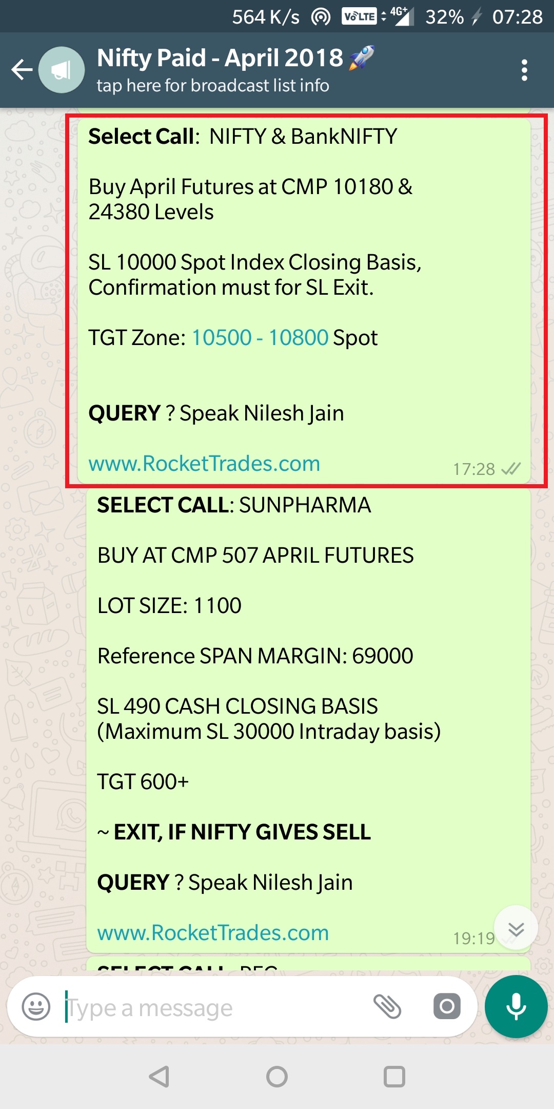 NIFTY April Futures Advise Records: Left Screen Shot Contents NIFTY Entry Details and Right Screen Shots content details about Stop-Loss and Target (sending time after Market hours)