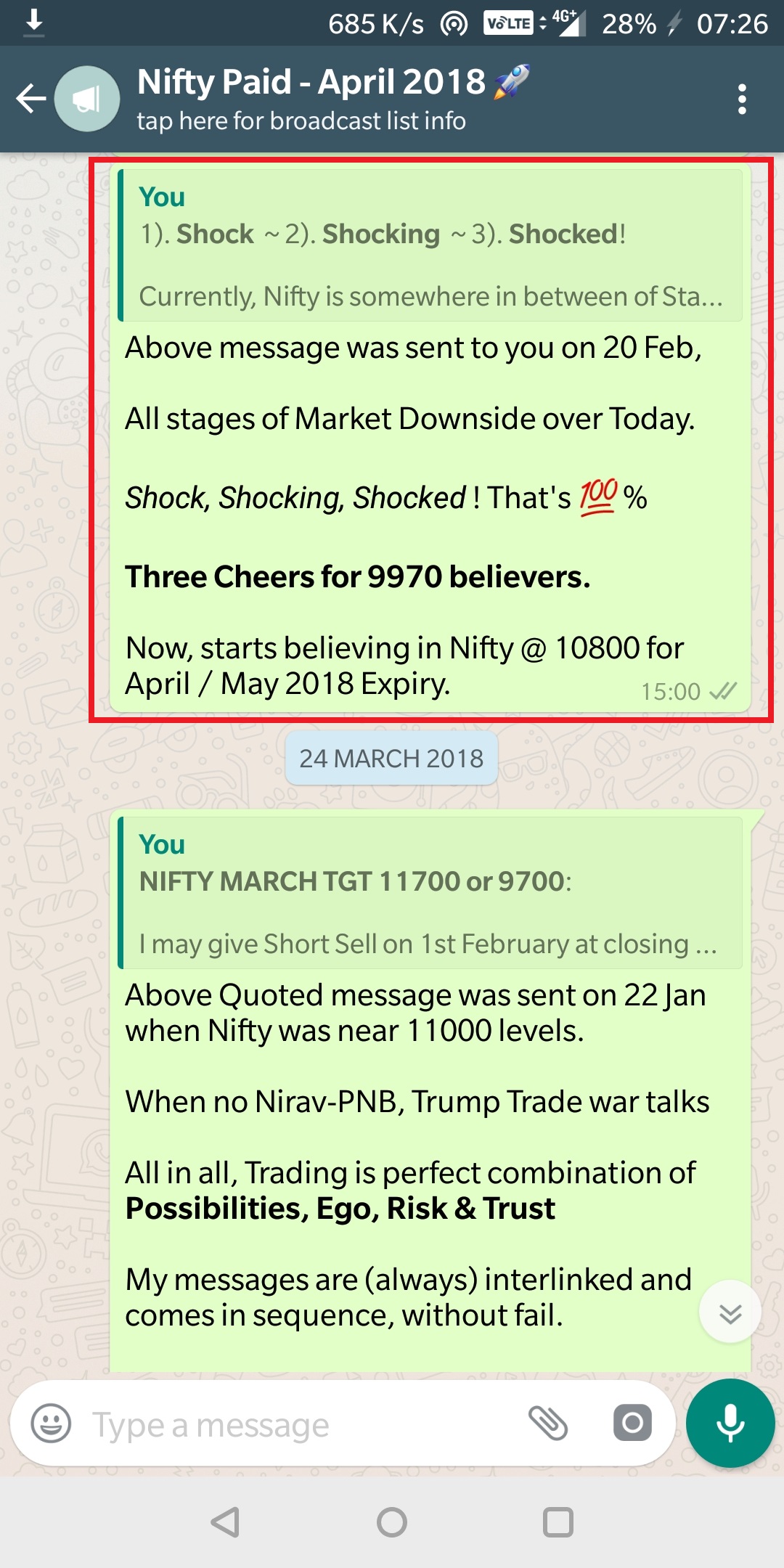 For Example: Believing in Nifty March Target of 9970 was very difficult when trading near 10600 or believing in 10800 when Nifty closed below 10000 on 23rd March Friday. But, all these were part of “Possibilities, Ego, Risk, and Trust”.