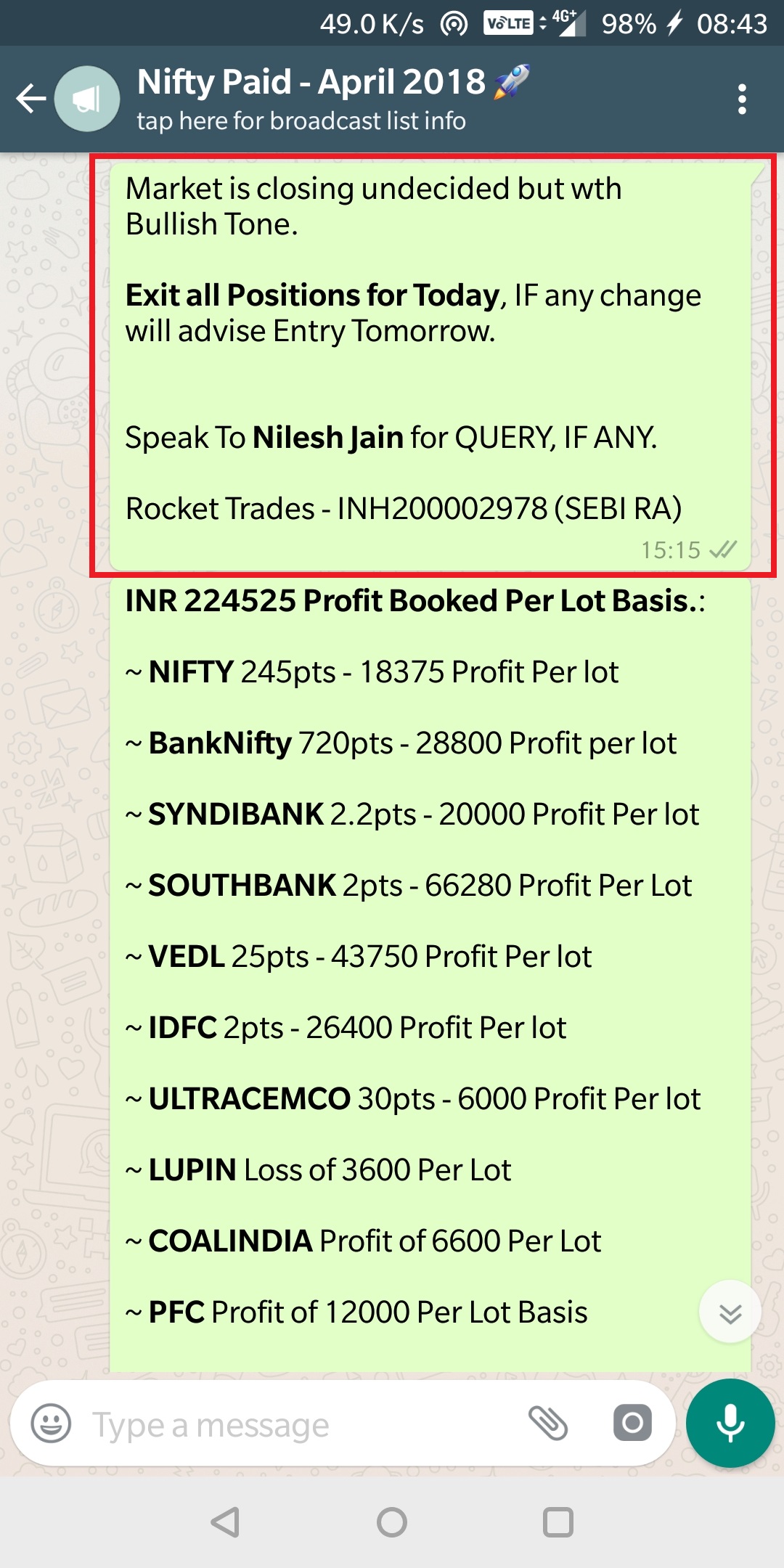 That’s why Patience and discipline is most important at Rocket Trades. And this is sole reason of taking early (precautionary) exits from Market.