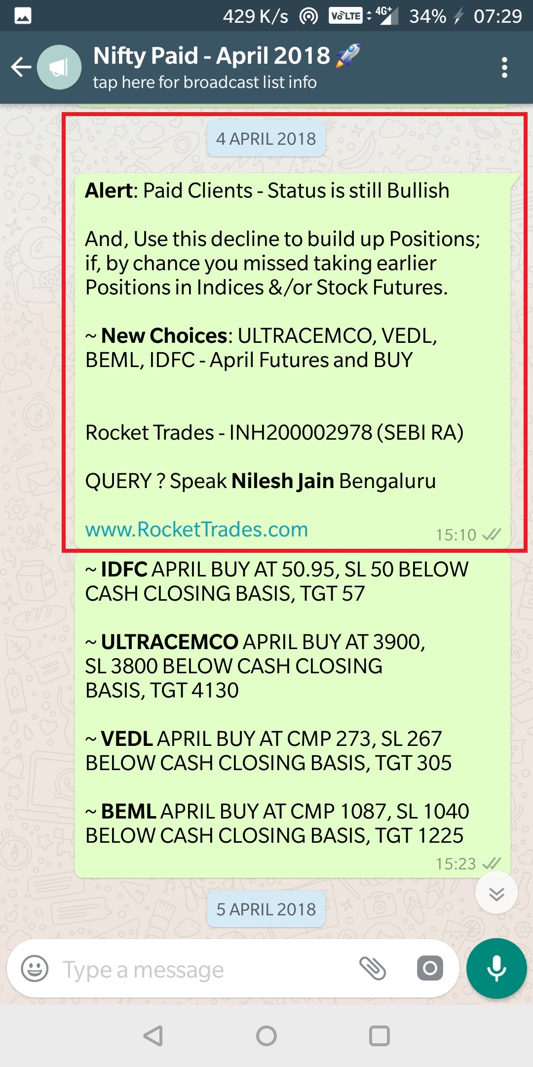 On 11th April, All Clients were told to exit and Profit Details were shared with them. No Fresh position is given till date. Rocket Clients are 100% in Cash both in NSE & MCX.