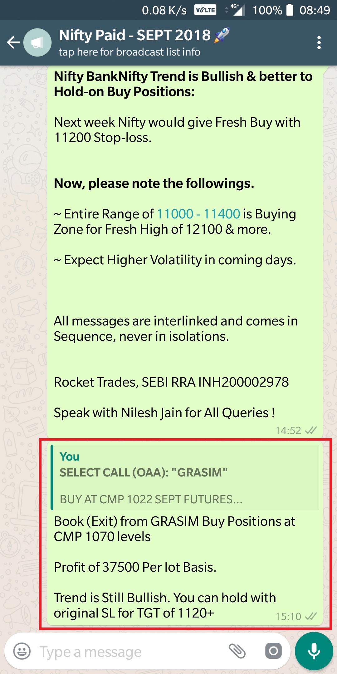 GRASIM EXIT PROFIT BOOKING MESSAGE Thursday, September 20, 2018 8:58 am Rocket TradesLeave a comment Share this: Click to email a link to a friend (Opens in new window) Email Click to print (Opens in new window) Print Like Loading...