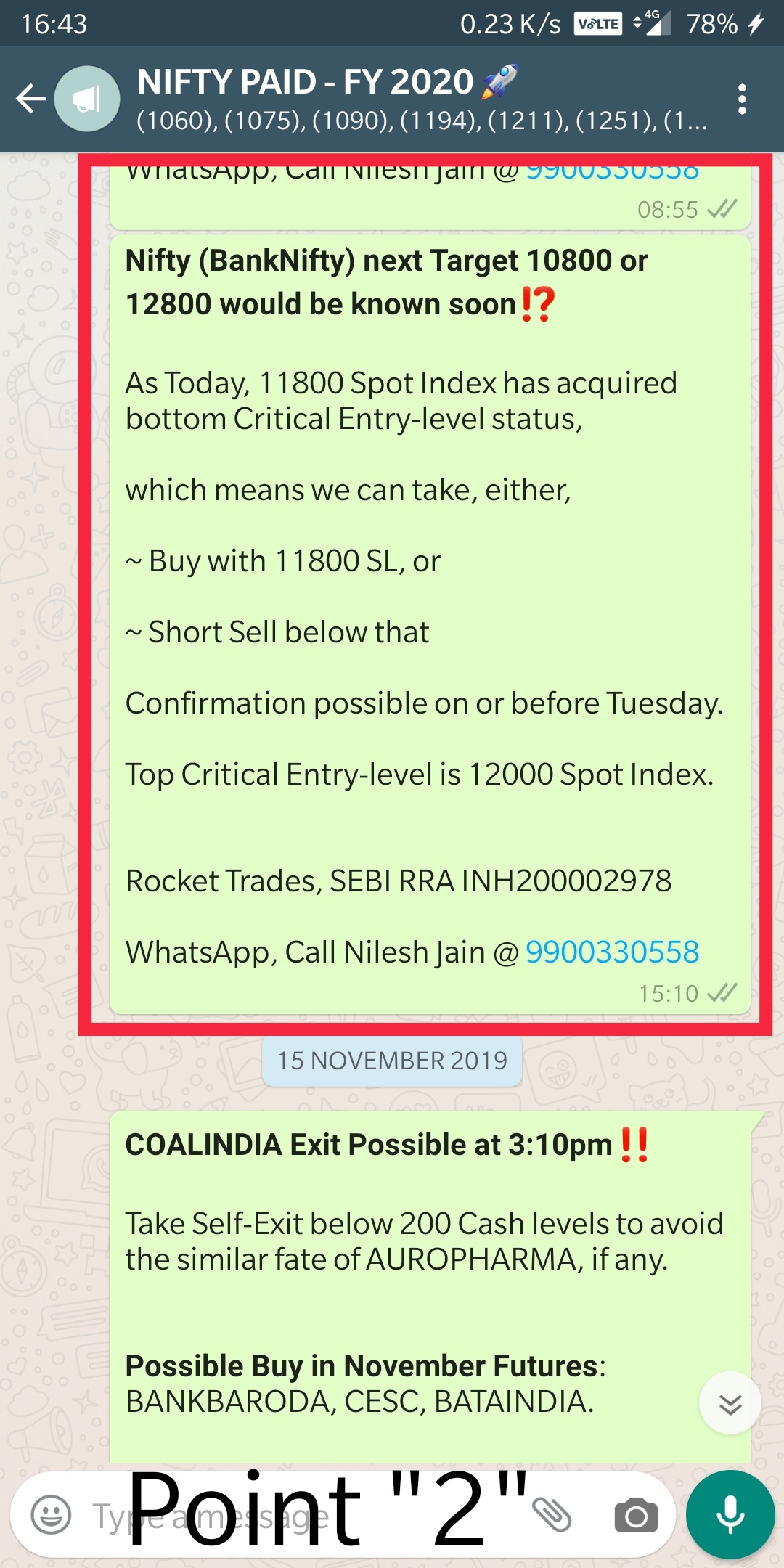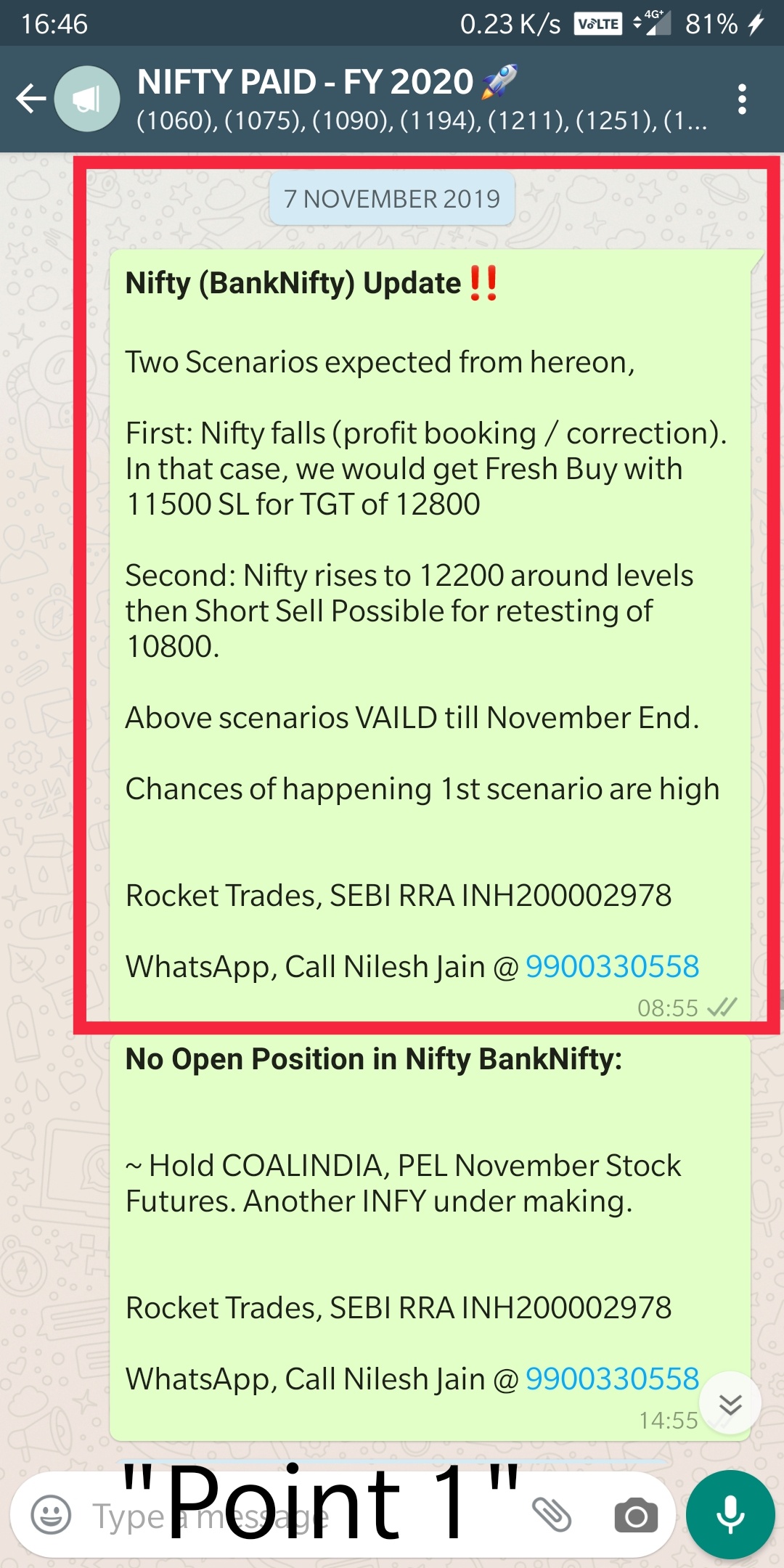 On 7th November, when NIFTY closed above 12000 for the first time after June 2019, we had updated to clients that 12200 as Possible Market Top (marked as Point 1 in above Chart), and on 14 November 2019 gave Market Support as 11800 (marked as Point 2).