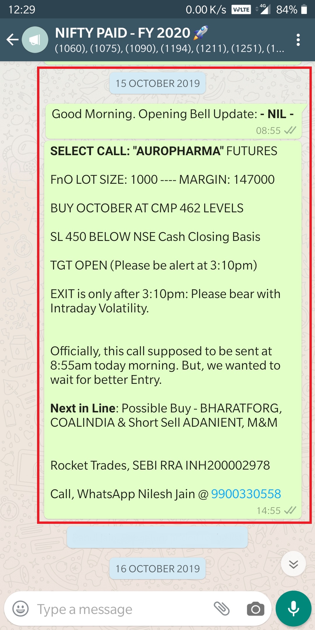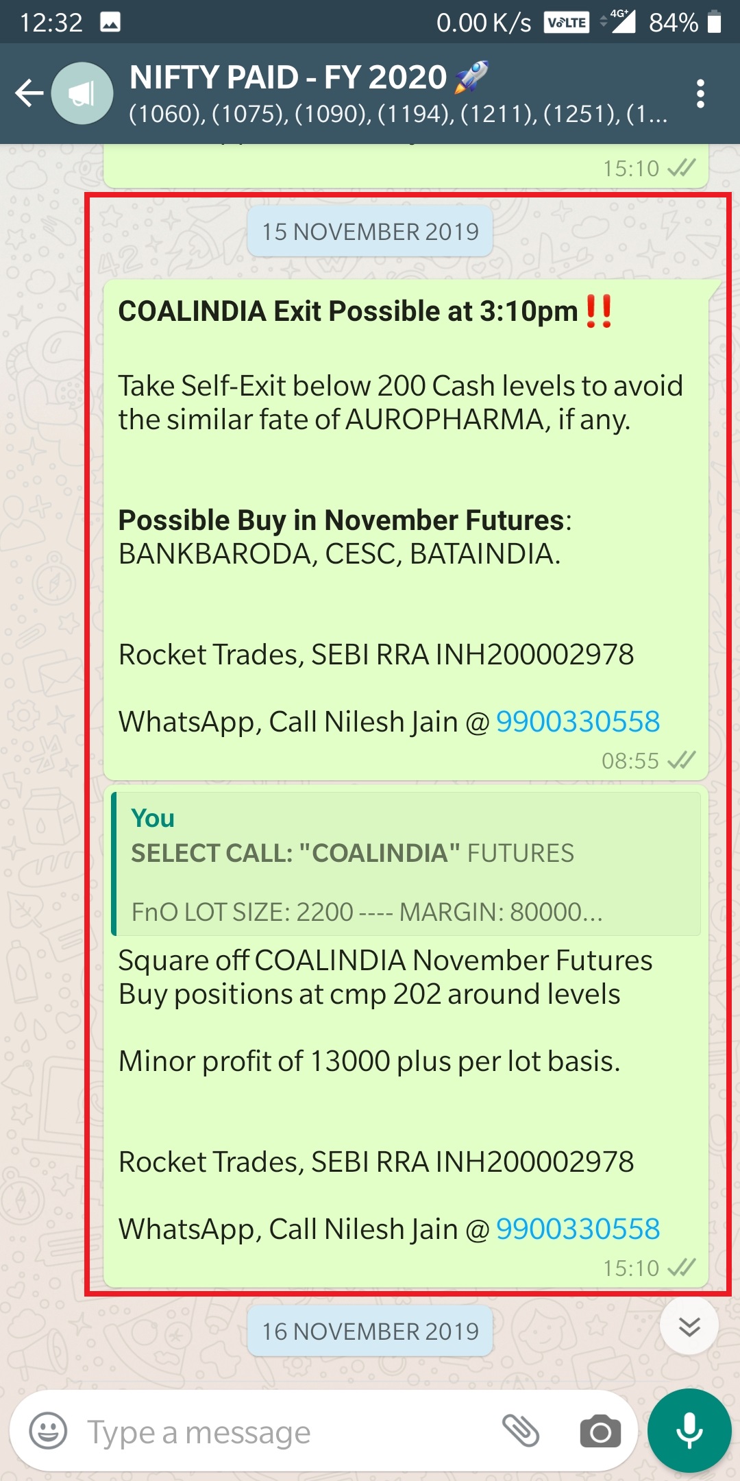 1). Entry Exit is NSE Cash Prices Dependent. Entry Exit Time is pre-decided. Please do refer attached Screen Shots. All of above were given to paid clients in real time. We use only NSE Codes in all our communications.