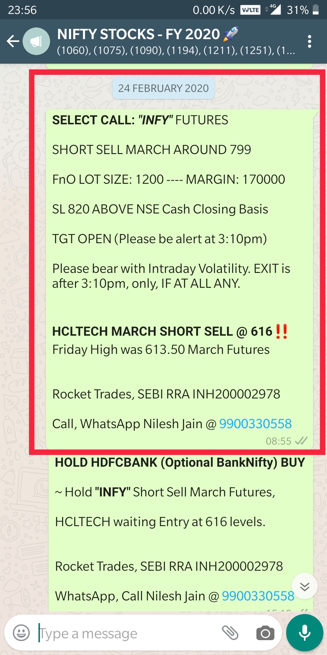 However, INFY did give us multiple entry and even higher than the recommended price. Every Client at Rocket Trades got minimum INR 82,000+ Profit per lot basis, lucky few got INR91,000+, too.