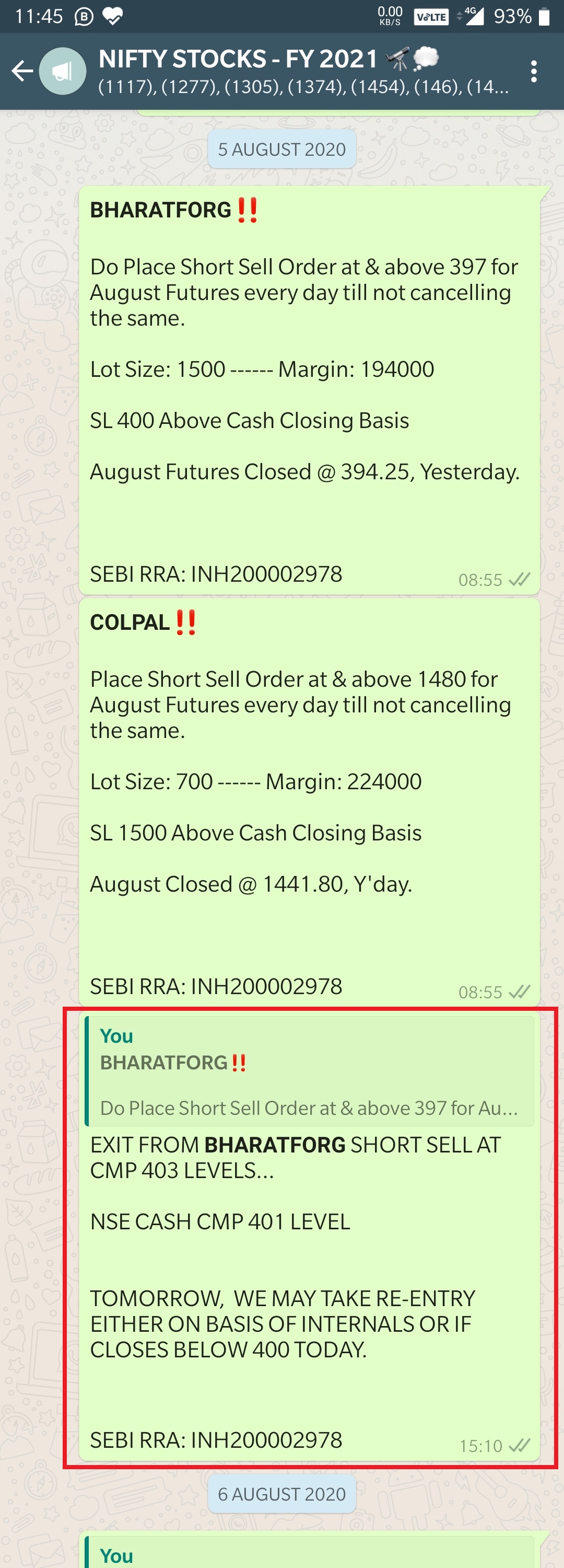 BHARATFORG: Same day closed, and then behave exactly the way DIVISLAB Short Sell did.