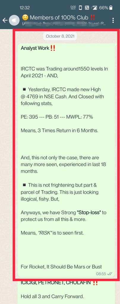 This is not only about one stock (IRCTC) but many others like IEX, AARTIIND, ADANI Groups, TATAMOTORS, TATAPOWER, DEEPAKNTR, NAVINFLUOR actually list is long, very long.