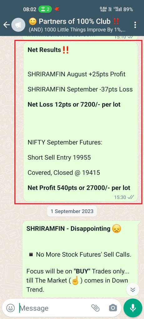 SHRIRAMFIN was open from July 31, 2023 to August 31, 2023 – we were in profit for 30 days out of 31 days of holding.