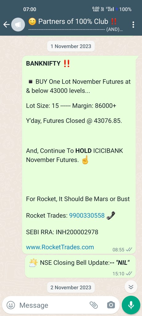 - As of now, we are 100% in Cash – Zero Positions in Stock Futures’ Segment.
