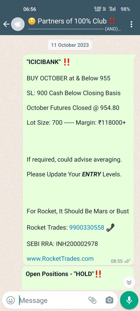 Presence of Bulls – ICICIBANK just touched our Stoploss and gave “STRONG” bounce.🙂🙏🏽