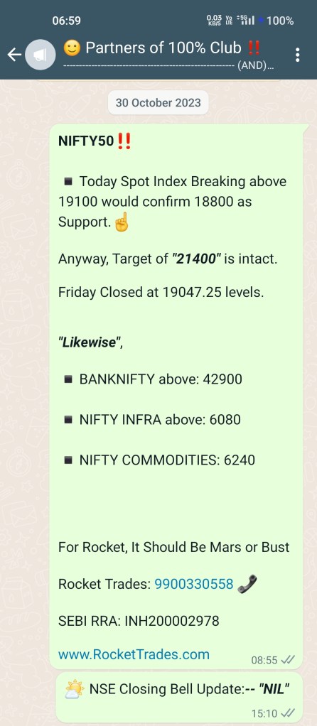 - We advised Entry before Results and took exit immediately after Results, that is on Monday 4th November 2024 at Closing Bell levels… 20800 & 46600 respectively levels.