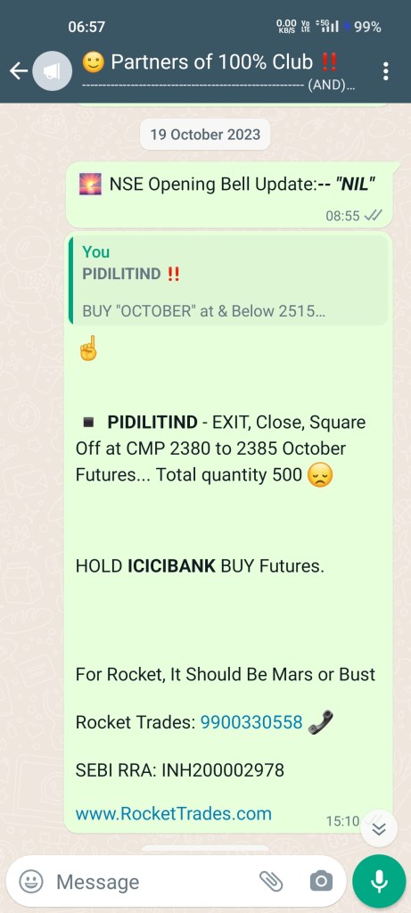 - The NIFTY50 Target of 21400 became clear to us when we had to book losses in PIDILITIND but not in ICICIBANK…