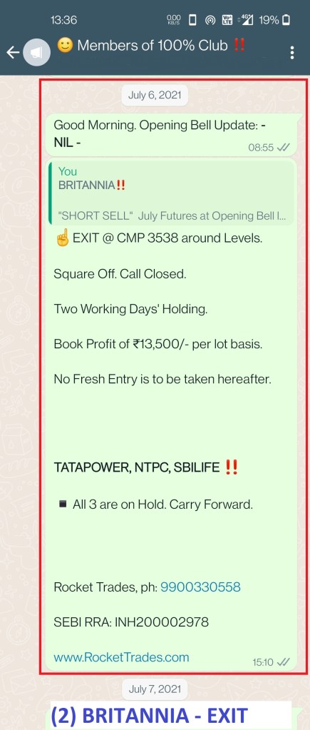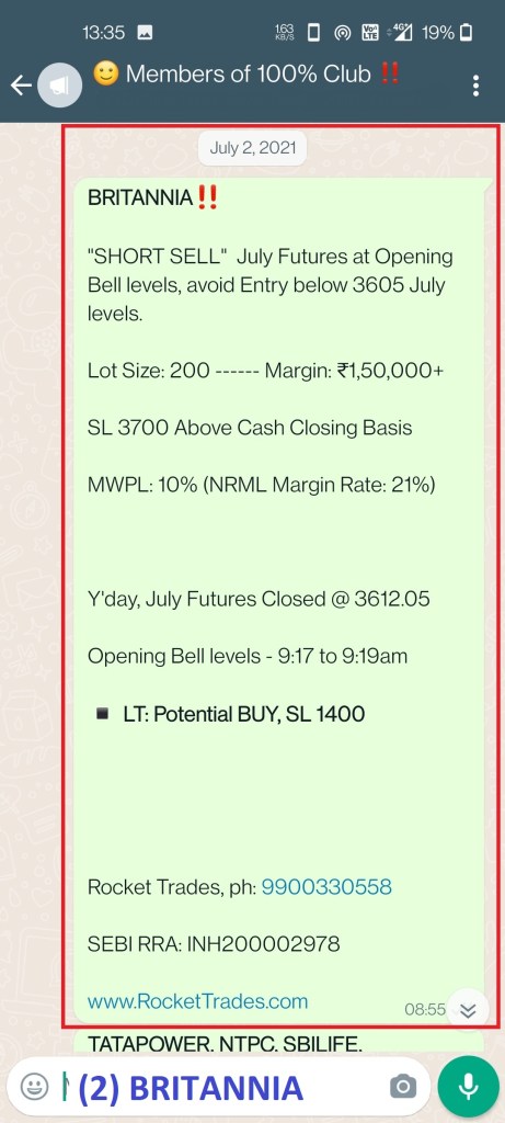 - BRITANNIA: Short Sell Call
