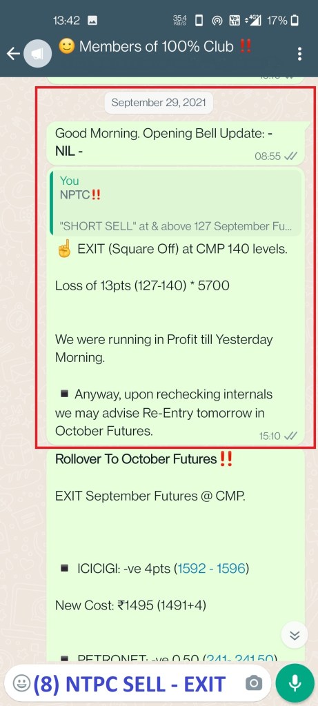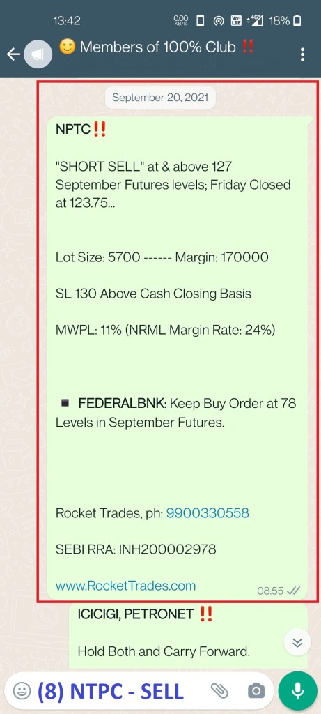 - FEDERALBNK: Missed 50000+ Profit per lot basis by 15paisa – thin margin.