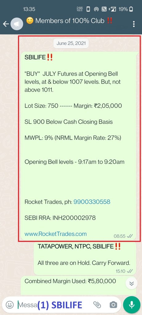 - SBILIFE: BUY Call