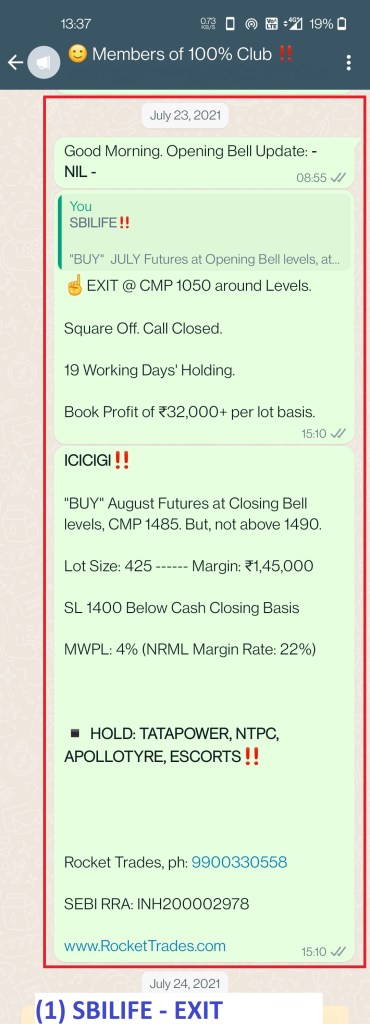 - SBILIFE: Early Exit – Rotated Funds to ICICIGI @ 1050 – After that HIT 1200+.